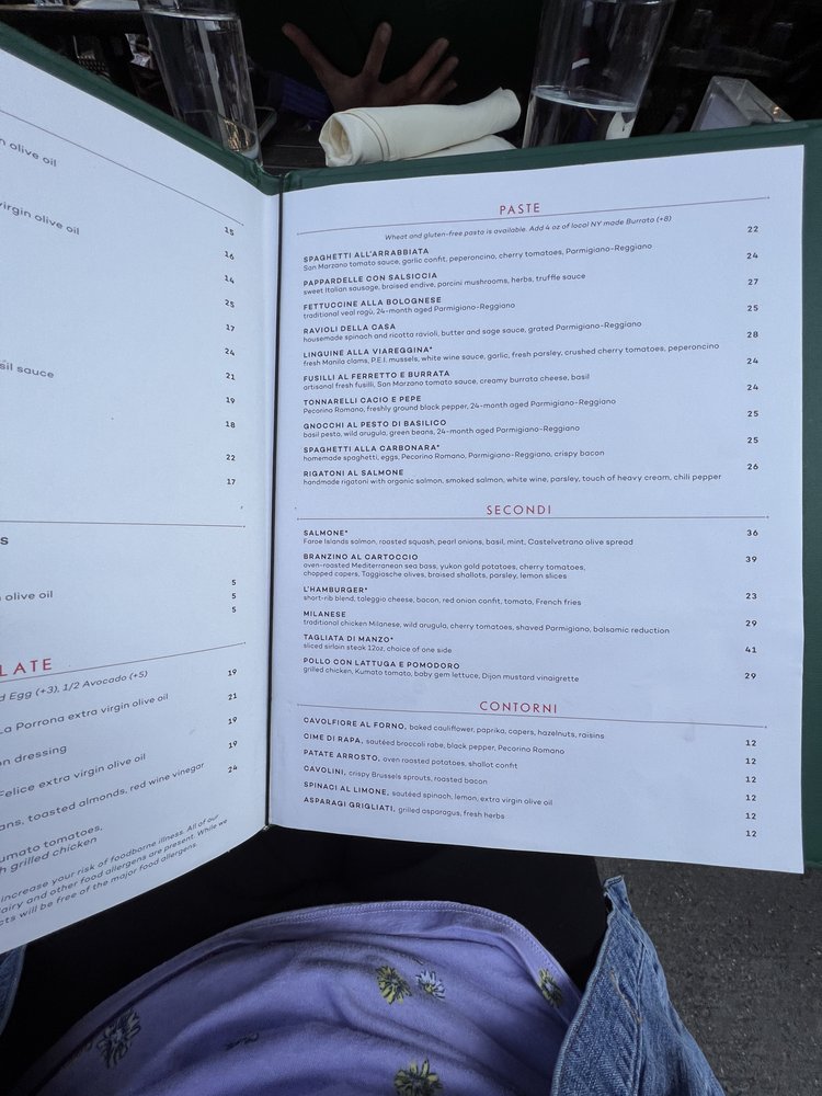 housemade spinach and ricotta ravioli, butter and sage sauce, grated Parmigiano-Reggiano